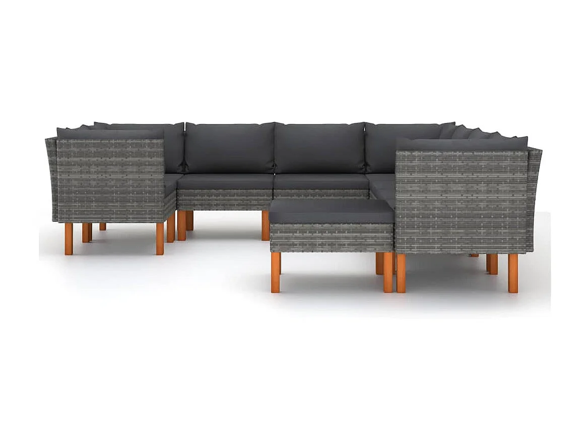 Salon de jardin 9 pcs avec coussins Résine tressée Gris 33