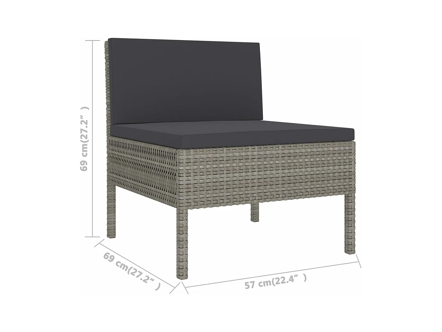 Salon de jardin 9 pcs avec coussins Résine tressée Gris 48