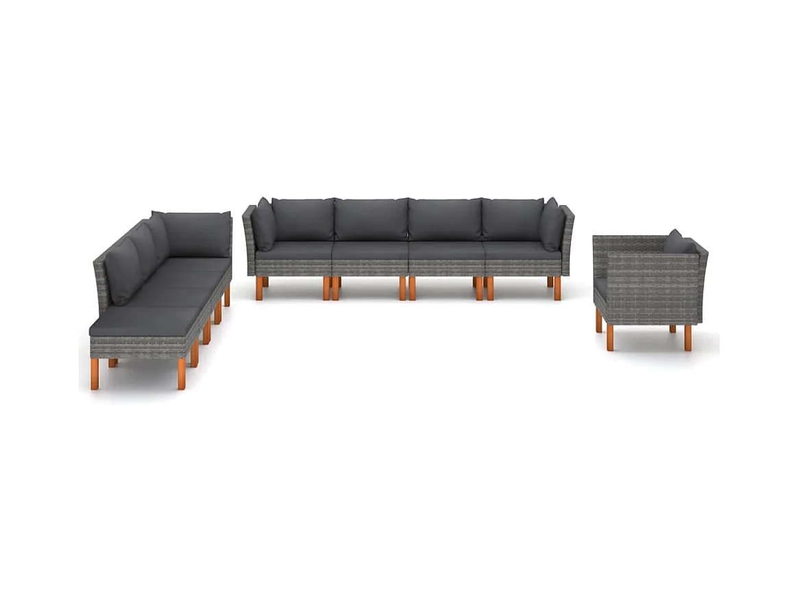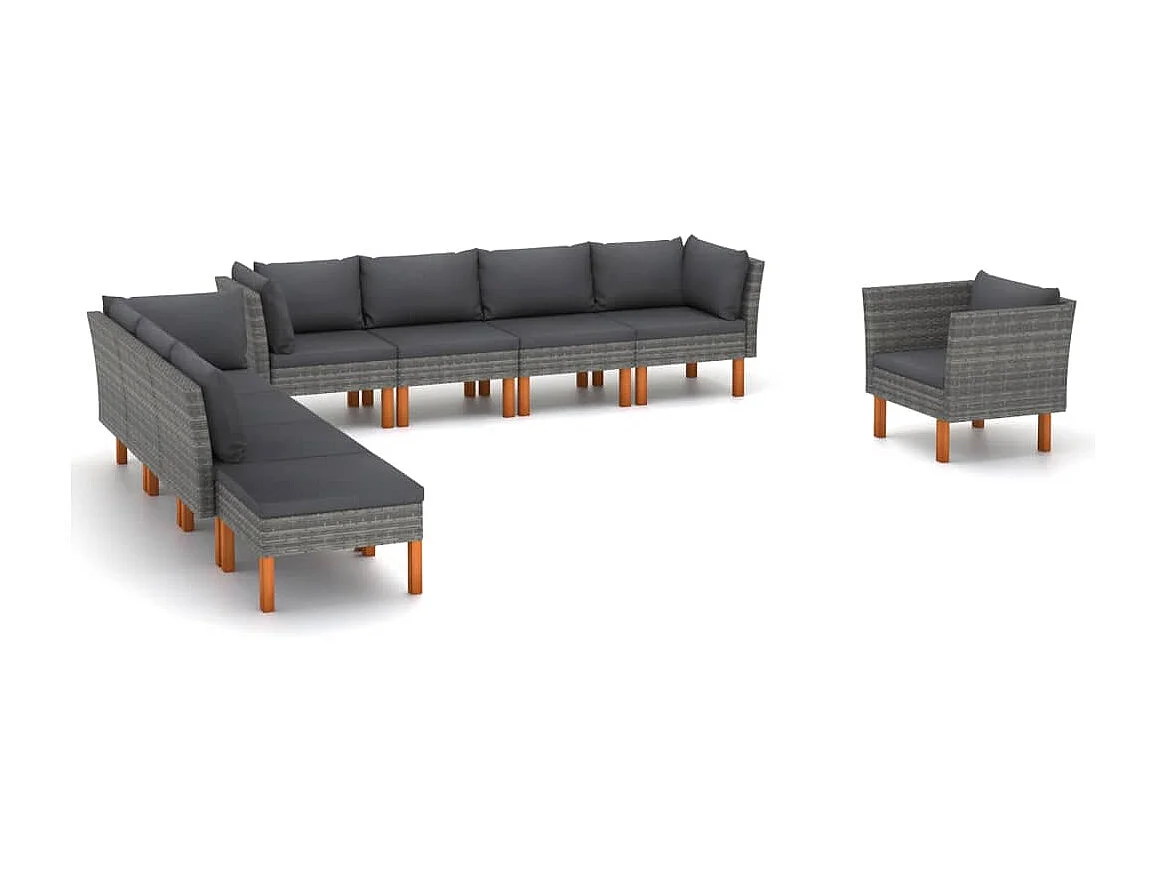 Salon de jardin 9 pcs Résine tressée et bois d'eucalyptus Gris