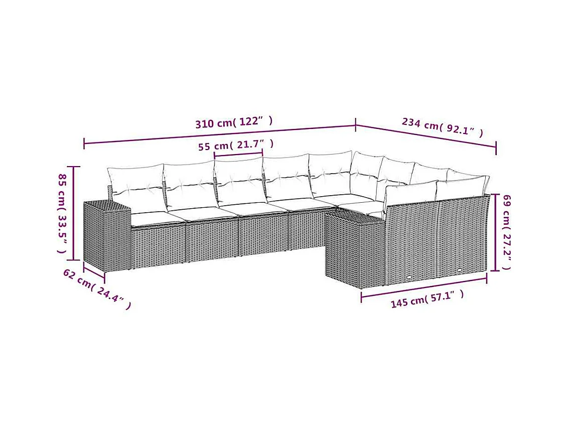 Salon de jardin 9 pièces avec coussins gris clair résine tressée