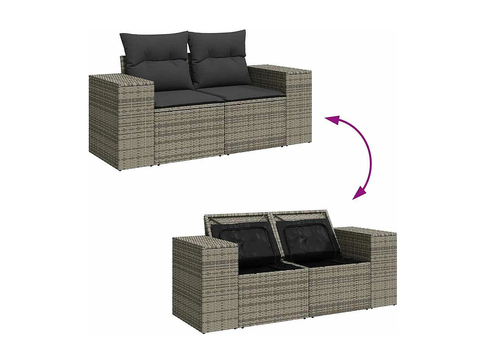 Salon de jardin 9 pièces avec coussins gris résine tressée