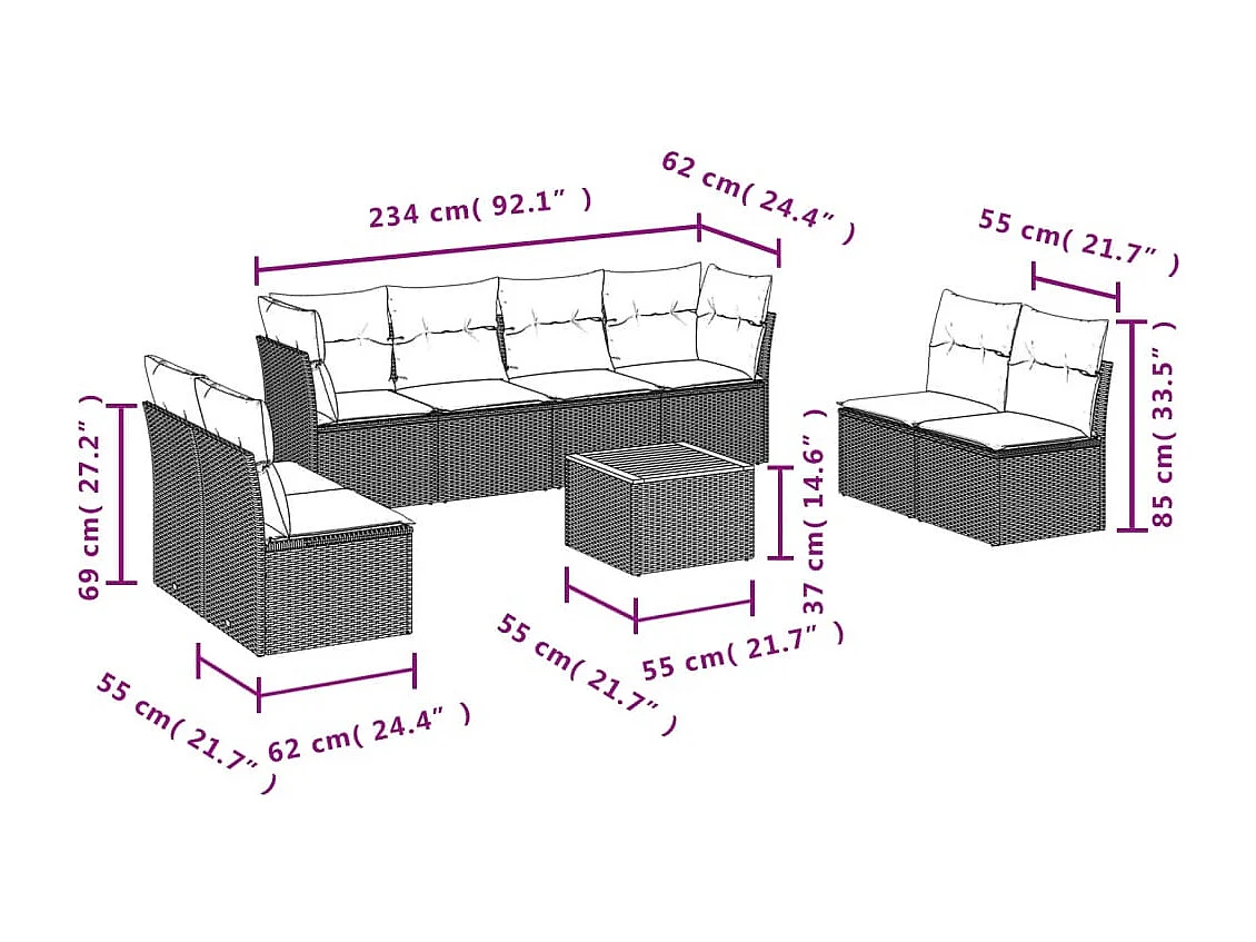 Salon de jardin 9 pièces avec coussins noir résine tressée