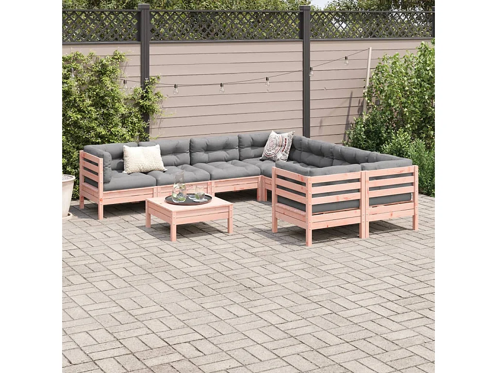 Salon de jardin 9 pièces avec coussins sapin de douglas solide