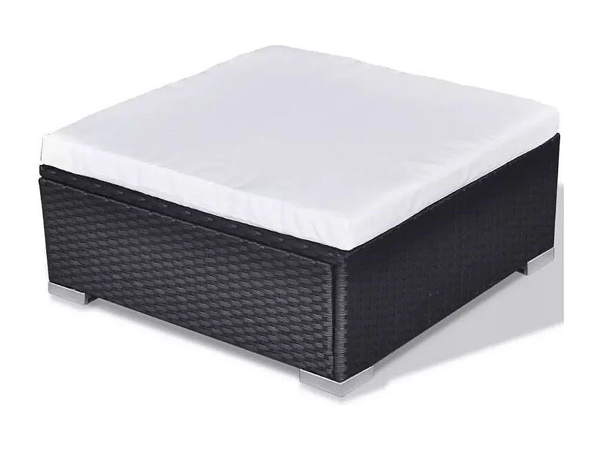 Salon de jardin 9 pièces résine tressée noir et coussins blanc Kim
