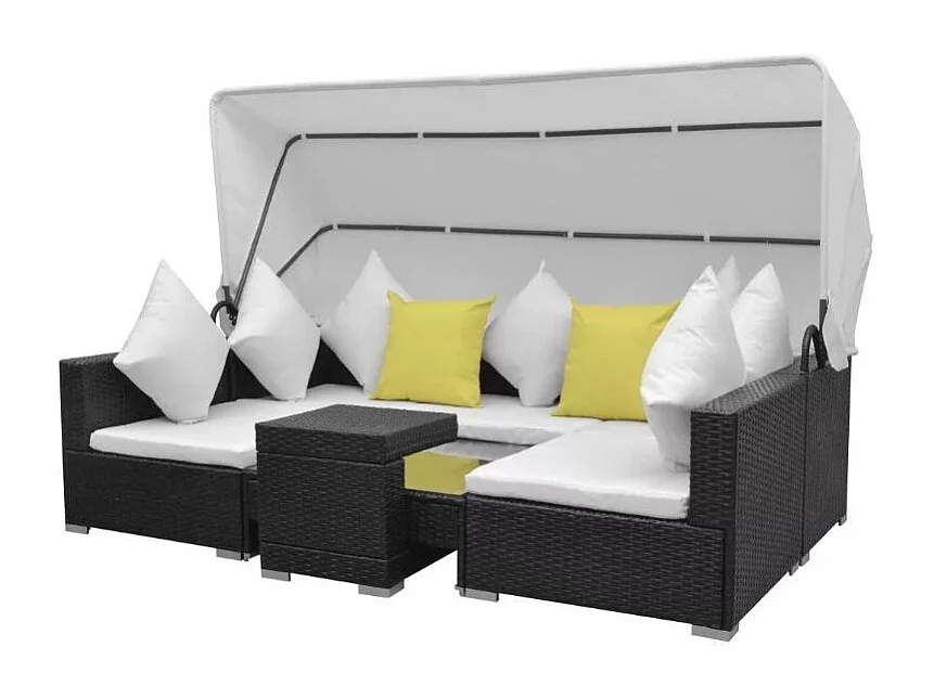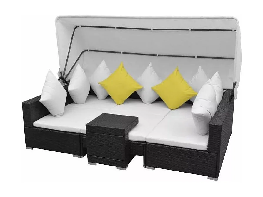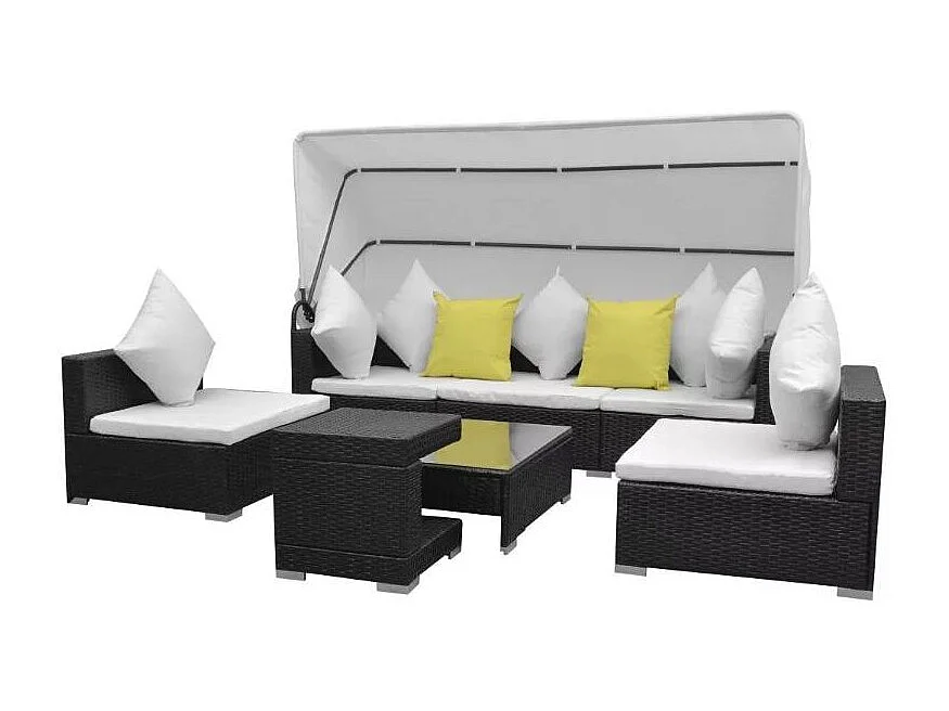 Salon de jardin à baldaquin 5 pièce résine tressée noir Chad