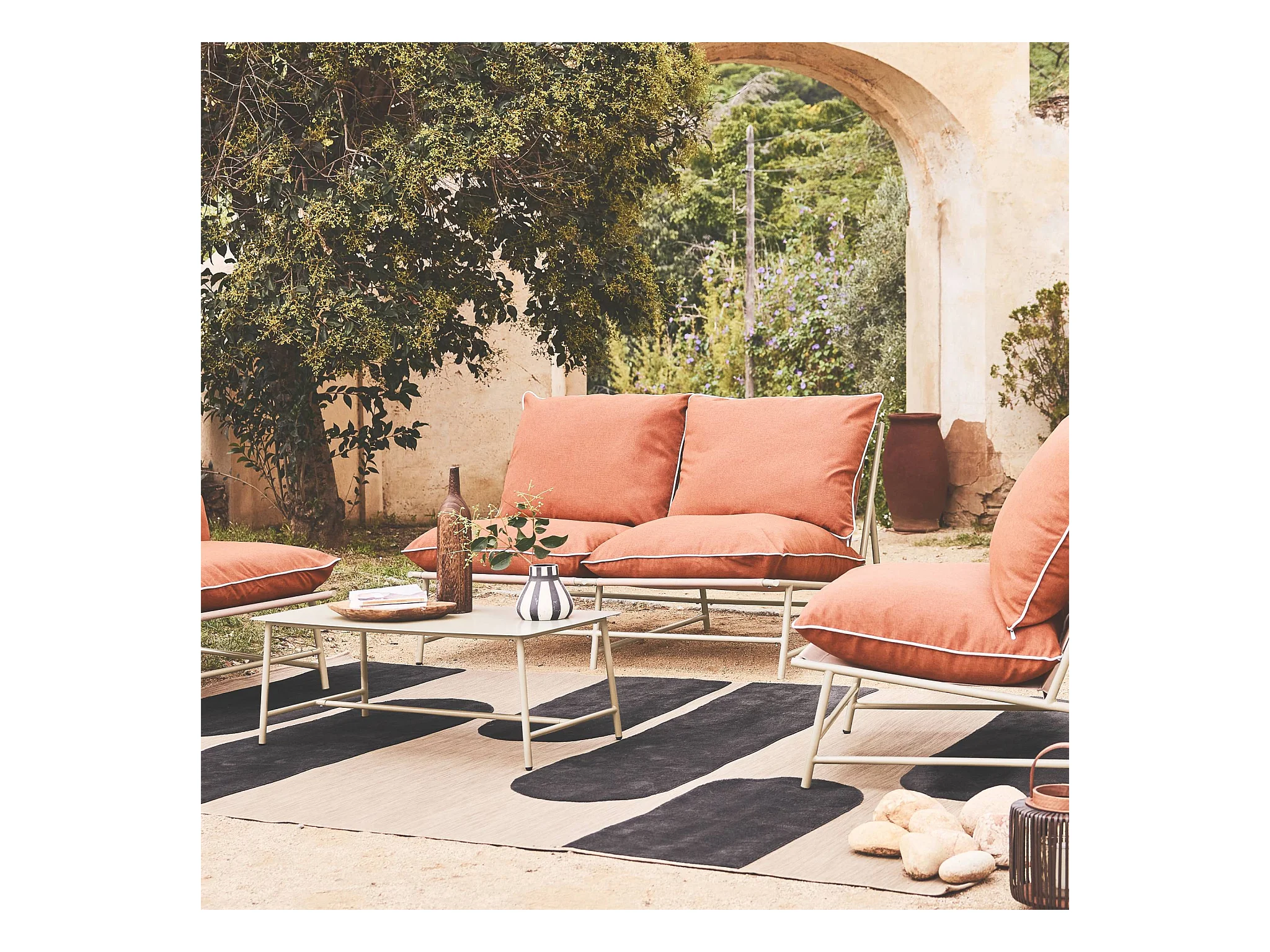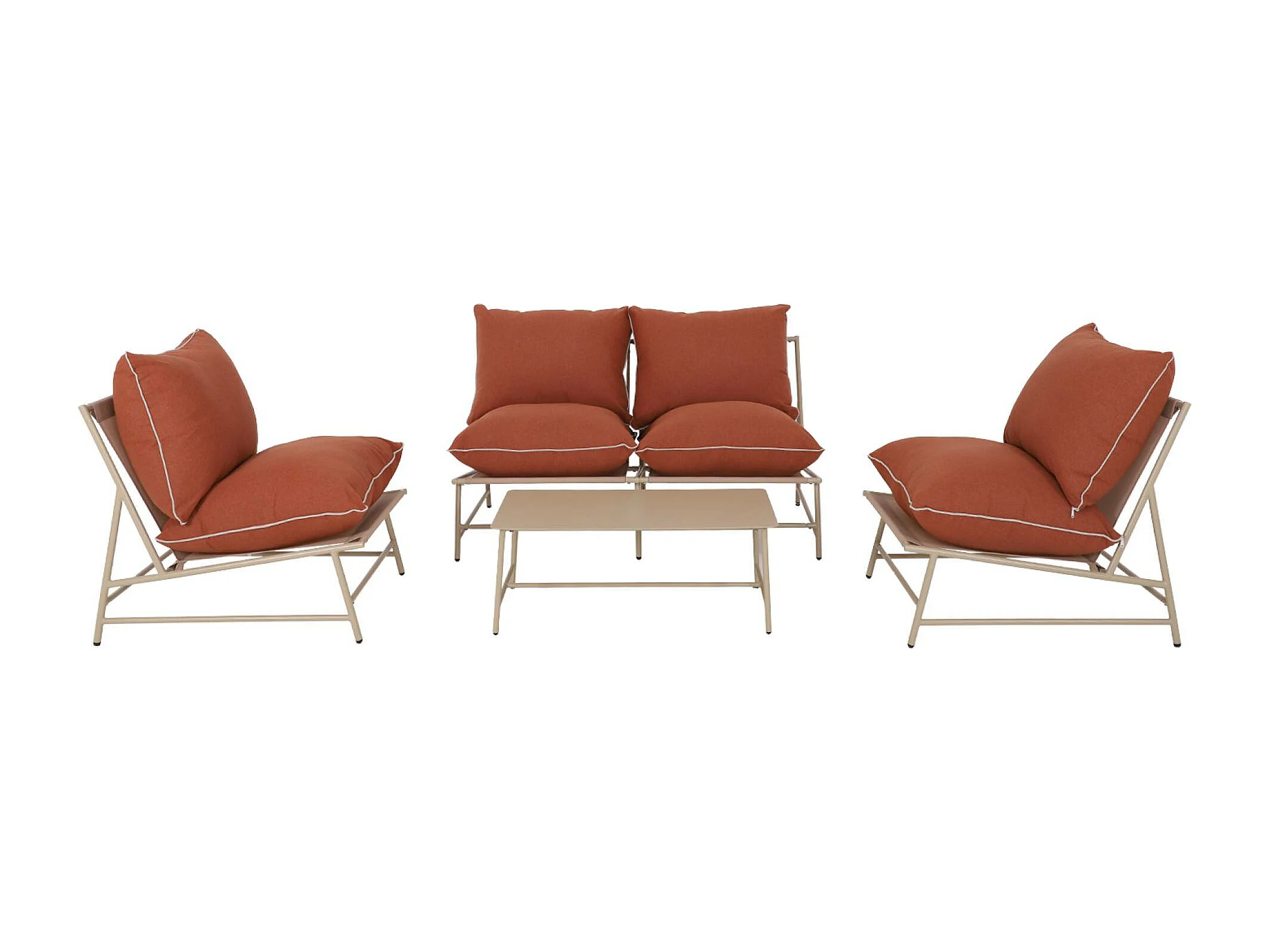 Salon de jardin acier SOFIA beige et terracotta. 4 places. table rectangulaire