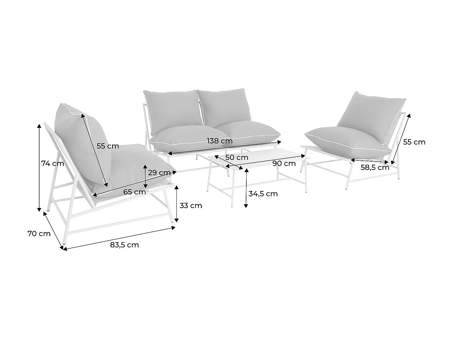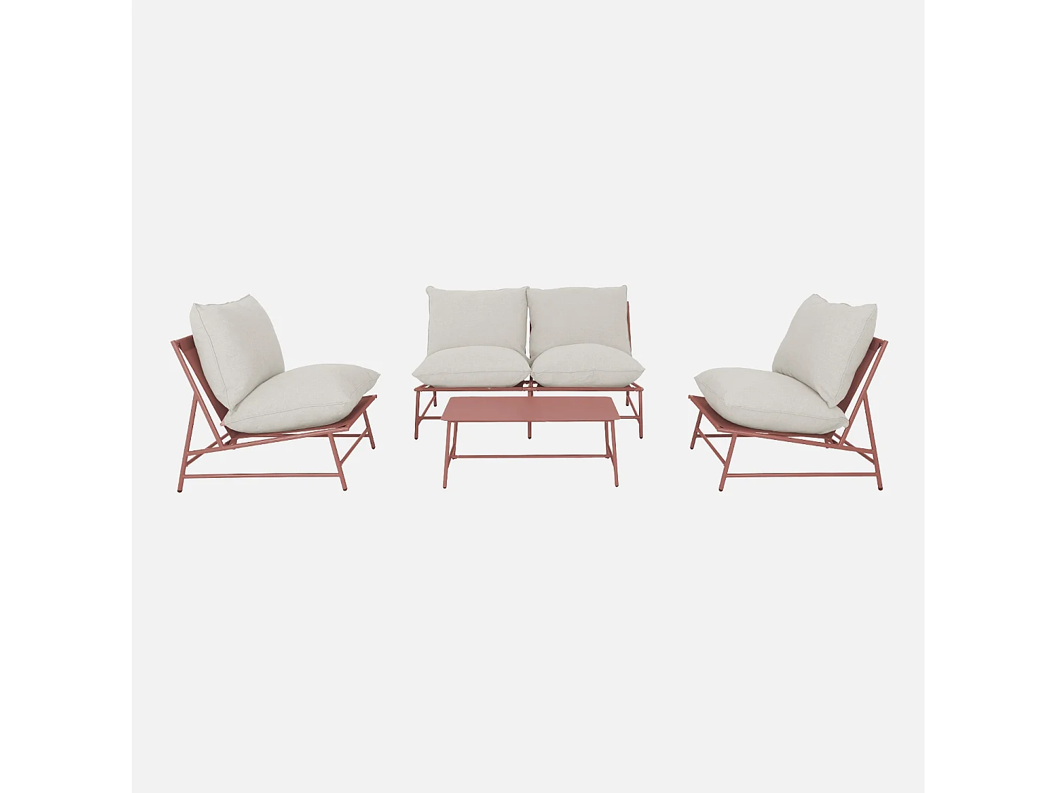 Salon de jardin acier SOFIA terracotta et beige. 4 places. table rectangulaire