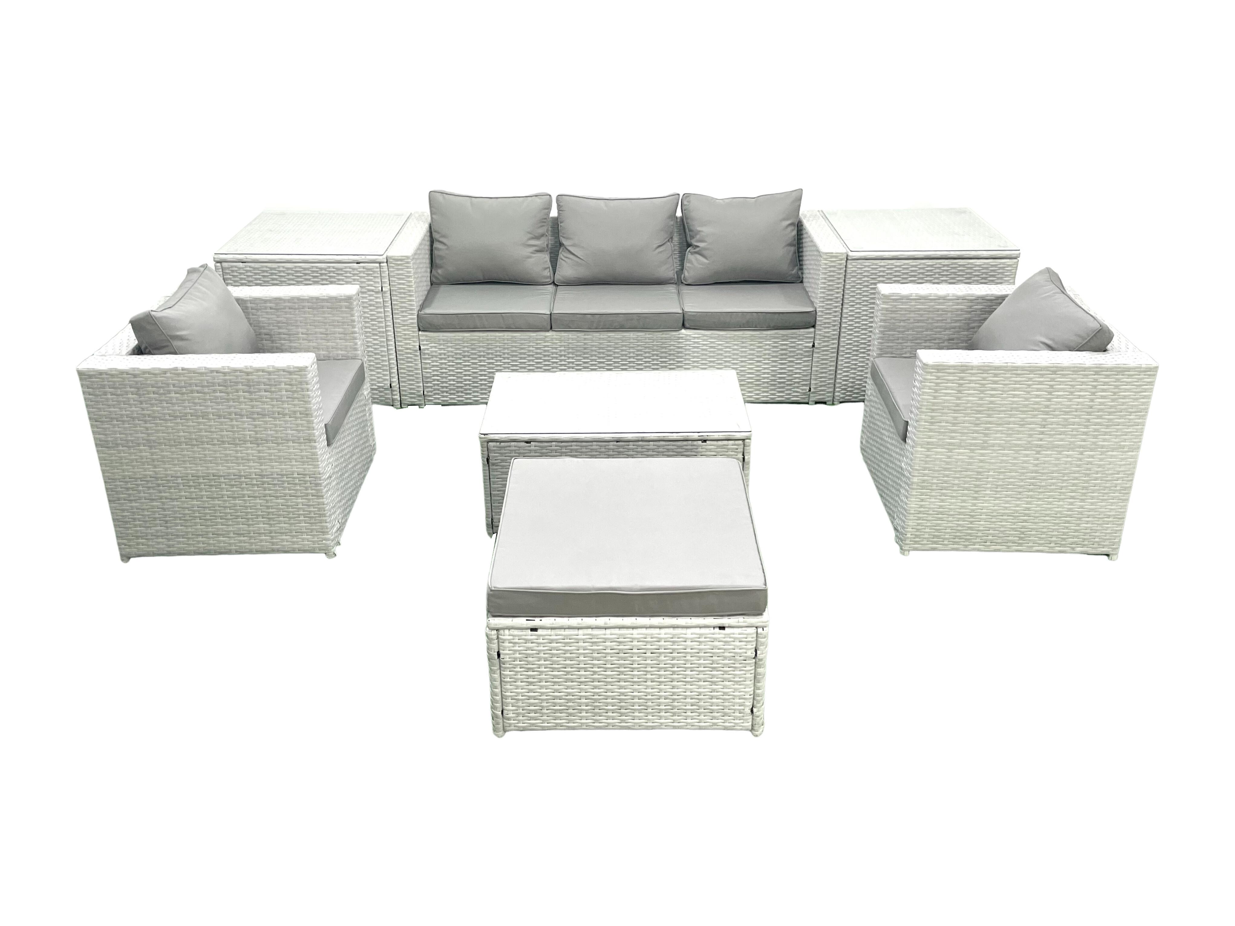Salon de jardin avec Canapé 3 places 2 Chaise Table basse rectangulaire Grand tabouret 2 Tables d'appoint Gris clair mixte 6 places