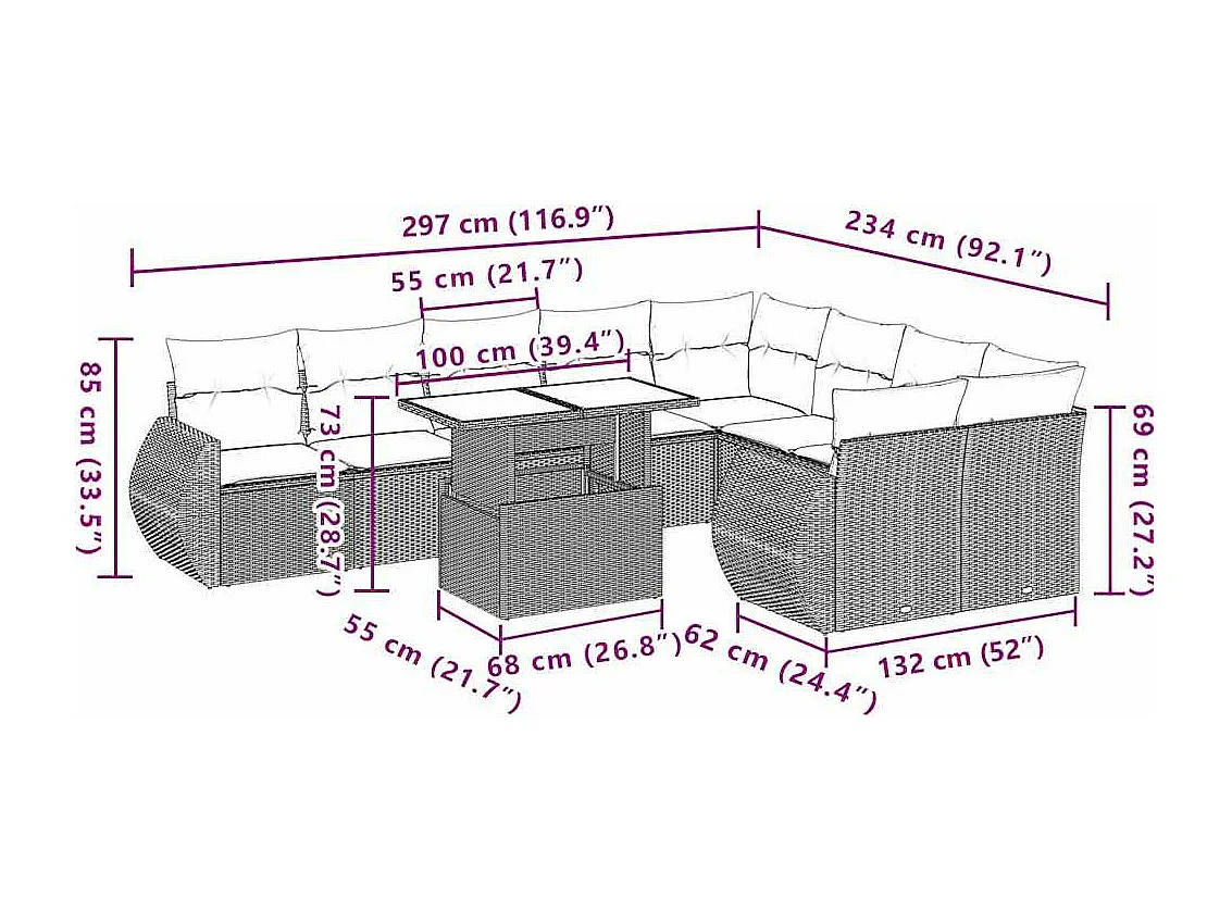 Salon de jardin avec coussins 10 pcs beige résine tressée
