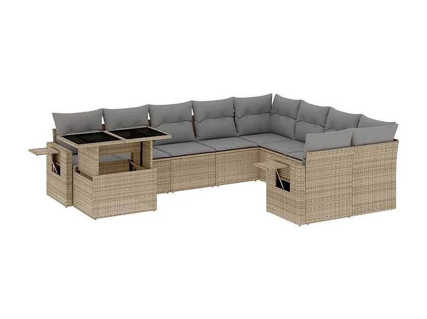 Salon de jardin avec coussins 10 pcs beige résine tressée