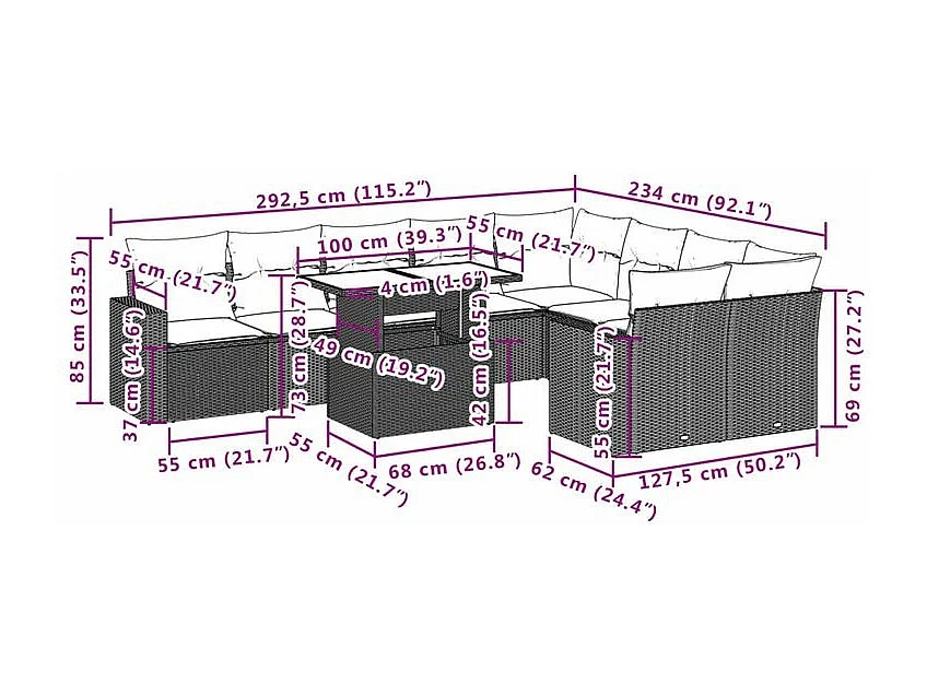 Salon de jardin avec coussins 10 pcs beige résine tressée