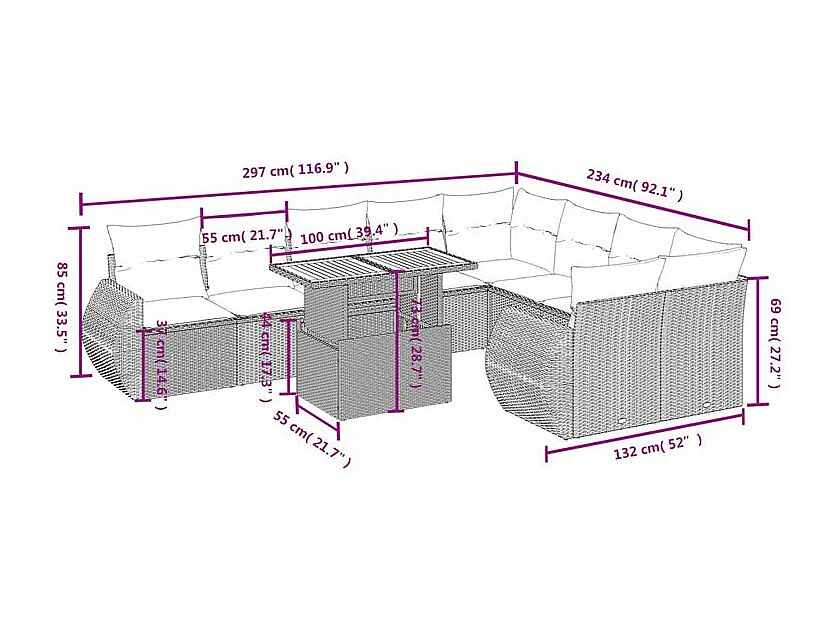 Salon de jardin avec coussins 10 pcs beige résine tressée