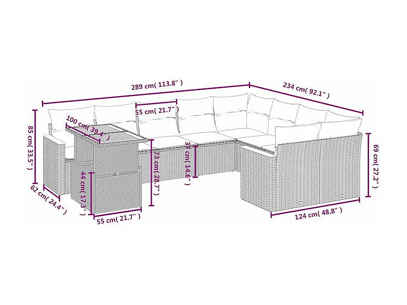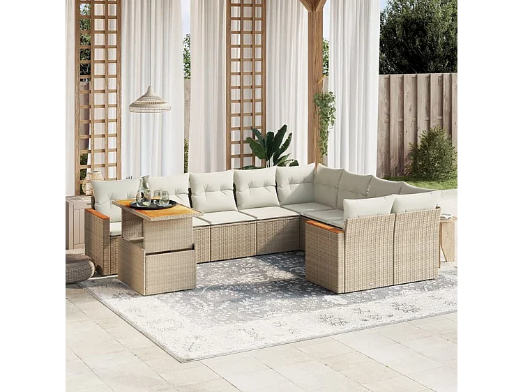 Salon de jardin avec coussins 10 pcs beige résine tressée
