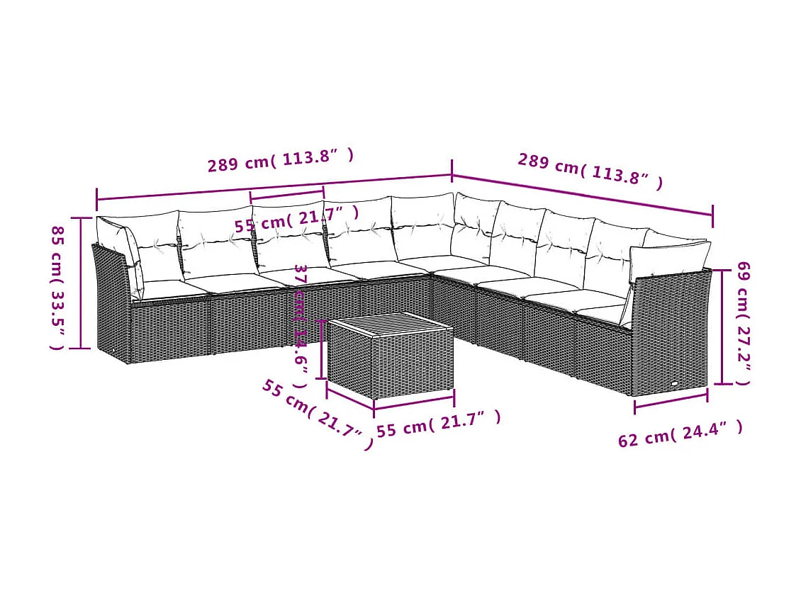 Salon de jardin avec coussins 10 pcs beige résine tressée