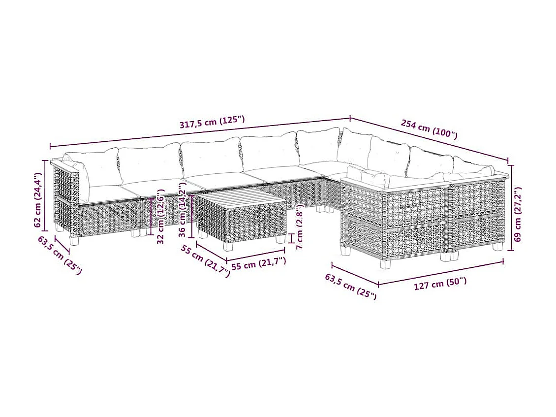 Salon de jardin avec coussins 10 pcs beige résine tressée
