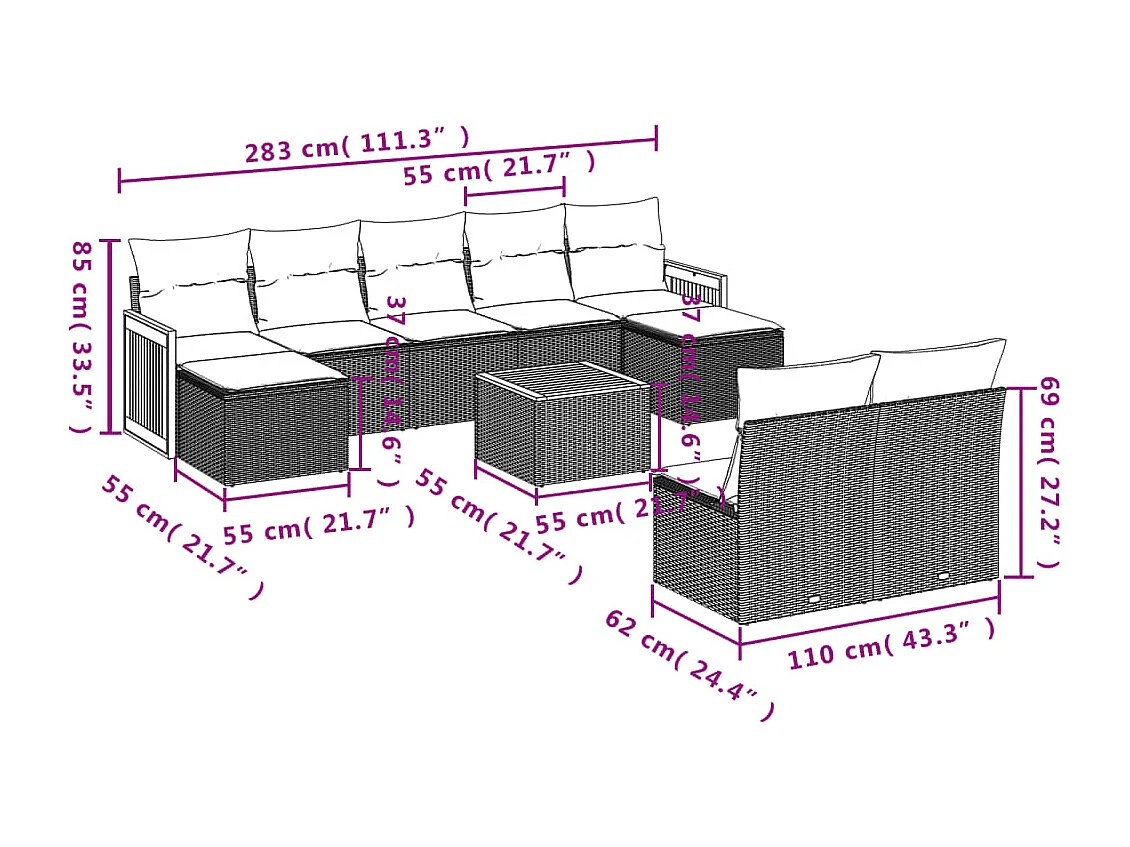Salon de jardin avec coussins 10 pcs beige résine tressée