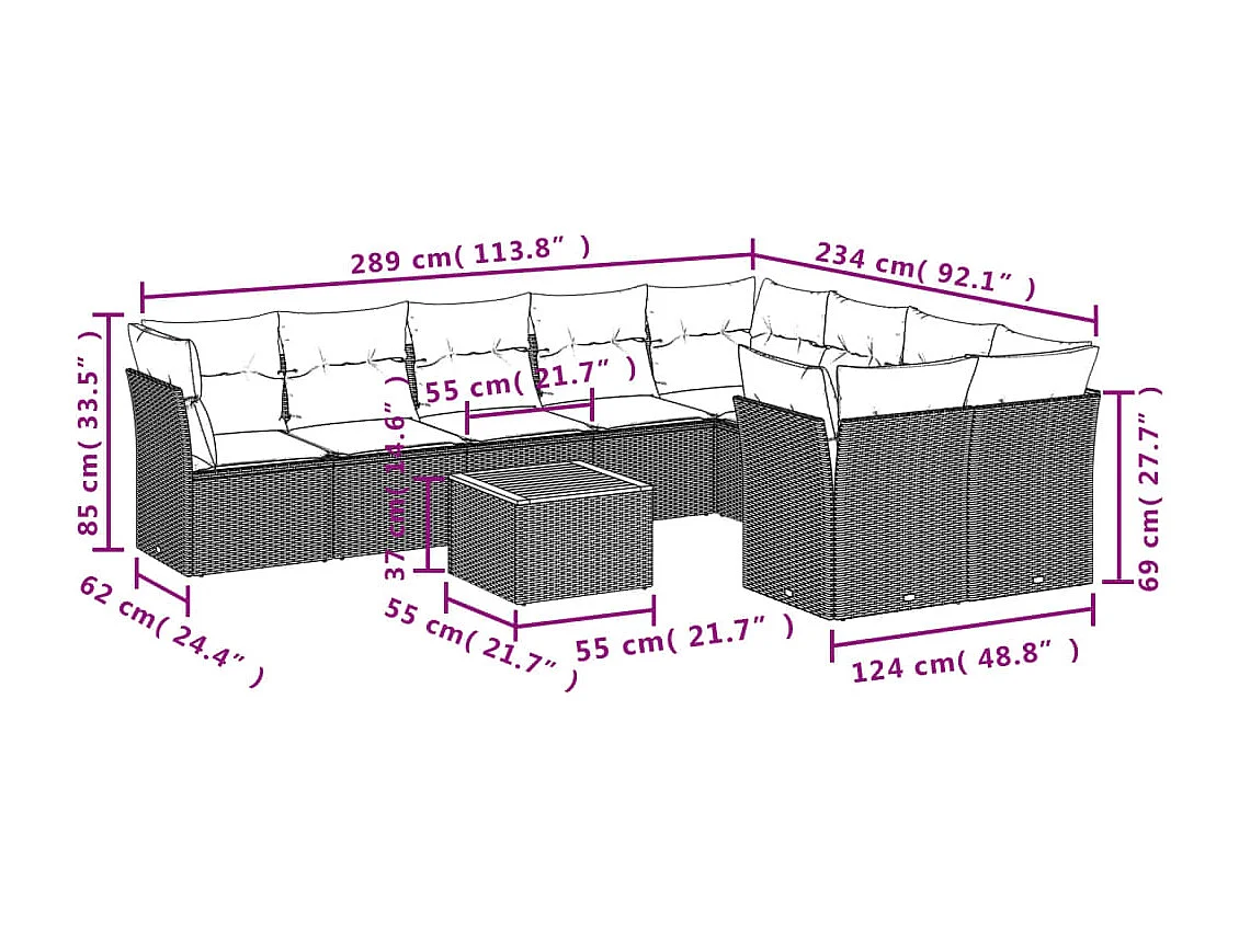 Salon de jardin avec coussins 10 pcs beige résine tressée