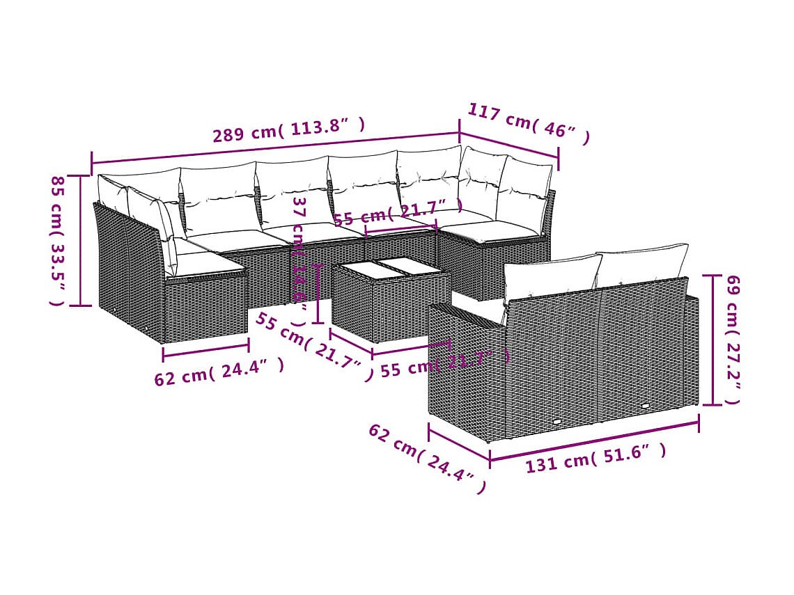 Salon de jardin avec coussins 10 pcs beige résine tressée