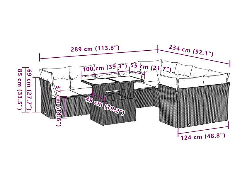 Salon de jardin avec coussins 10 pcs gris clair résine tressée