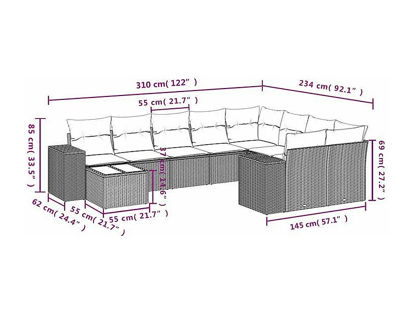 Salon de jardin avec coussins 10 pcs gris clair résine tressée