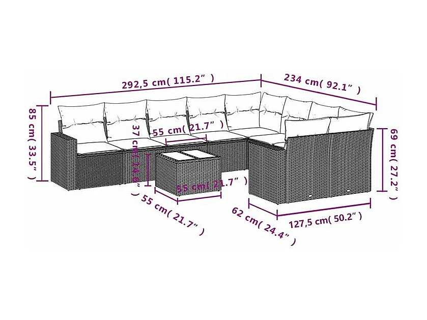 Salon de jardin avec coussins 10 pcs gris clair résine tressée