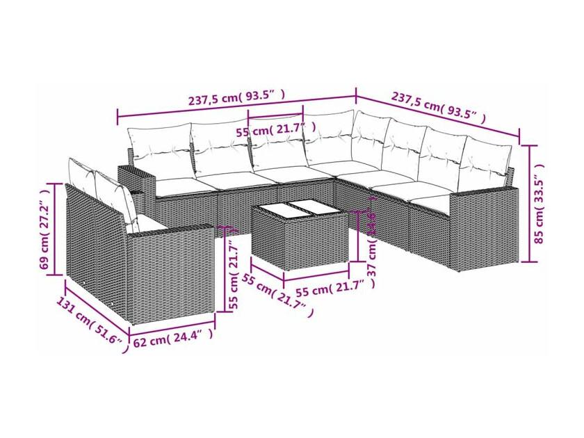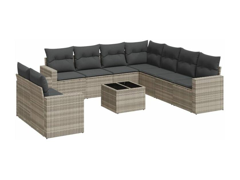 Salon de jardin avec coussins 10 pcs gris clair résine tressée