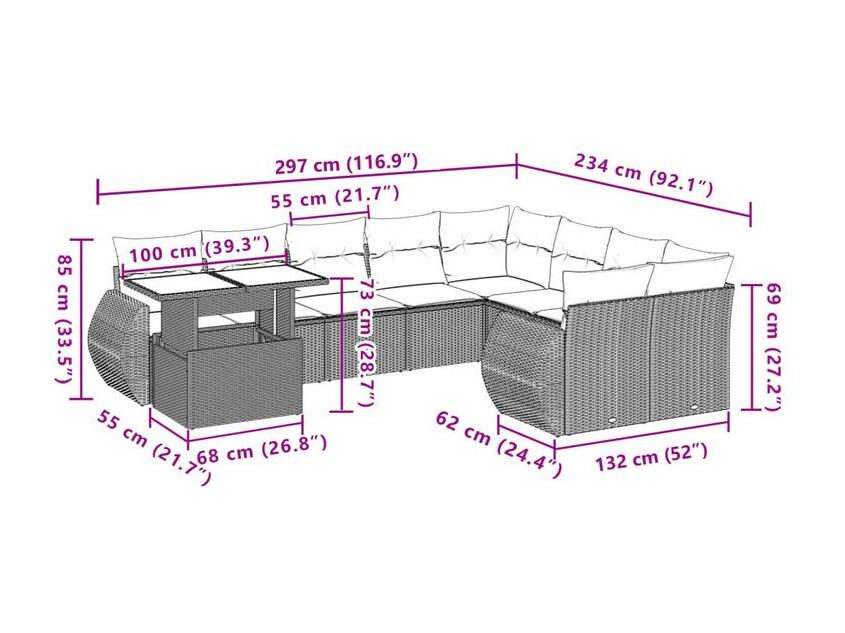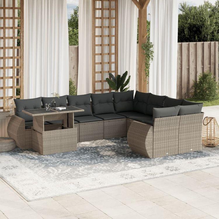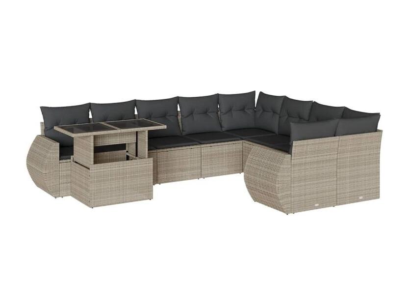 Salon de jardin avec coussins 10 pcs gris clair résine tressée
