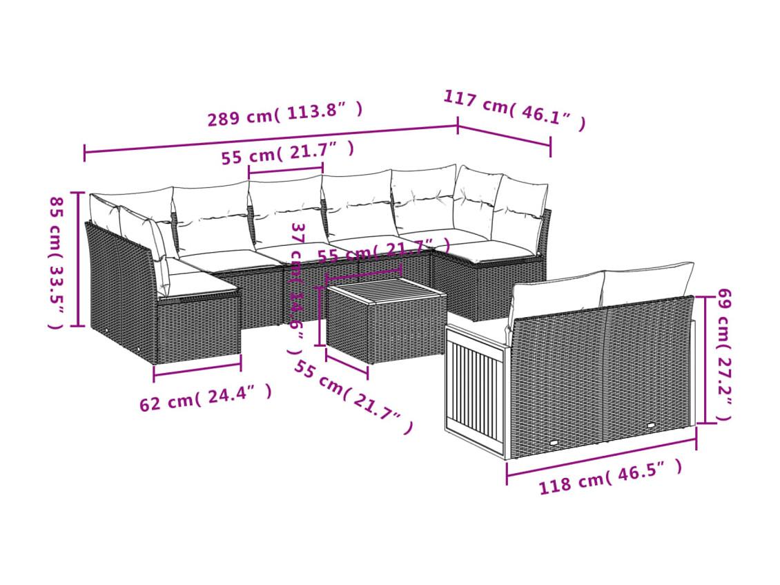 Salon de jardin avec coussins 10 pcs gris résine tressée