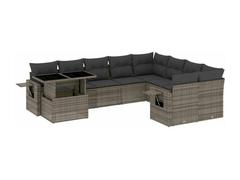 Salon de jardin avec coussins 10 pcs gris résine tressée