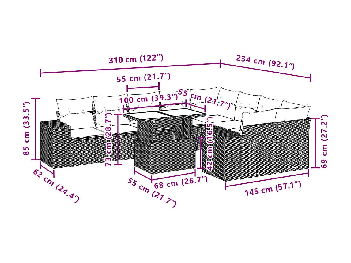 Salon de jardin avec coussins 10 pièces beige résine tressée