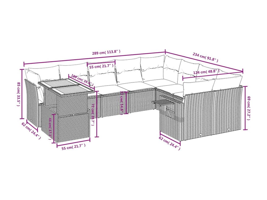 Salon de jardin avec coussins 10 pièces beige résine tressée