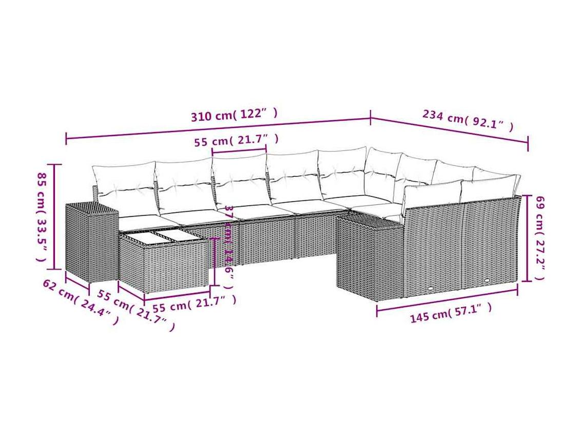 Salon de jardin avec coussins 10 pièces gris clair résine tressée