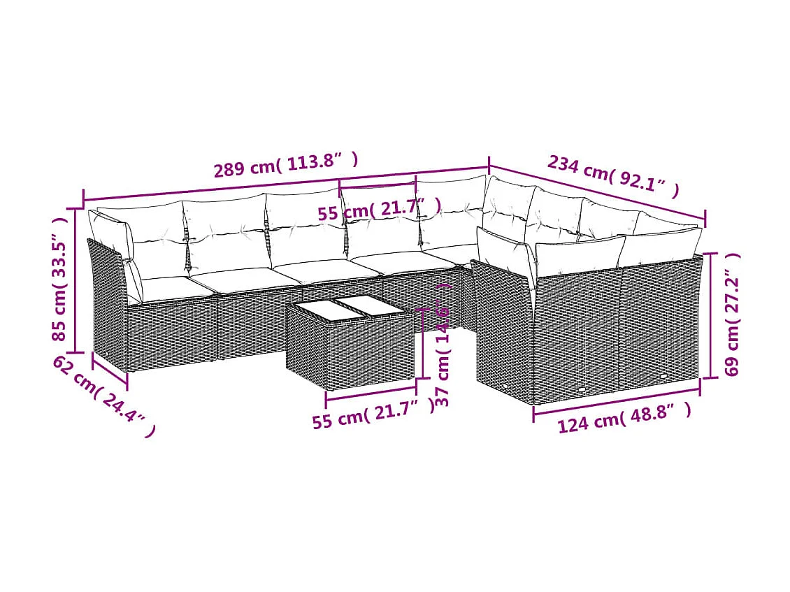 Salon de jardin avec coussins 10 pièces gris clair résine tressée