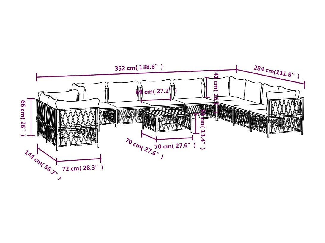 Salon de jardin avec coussins 11 pcs anthracite acier