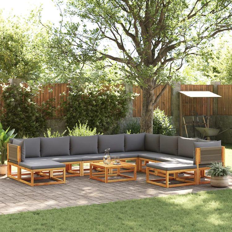Salon de jardin avec coussins 11 pcs bois massif d'acacia