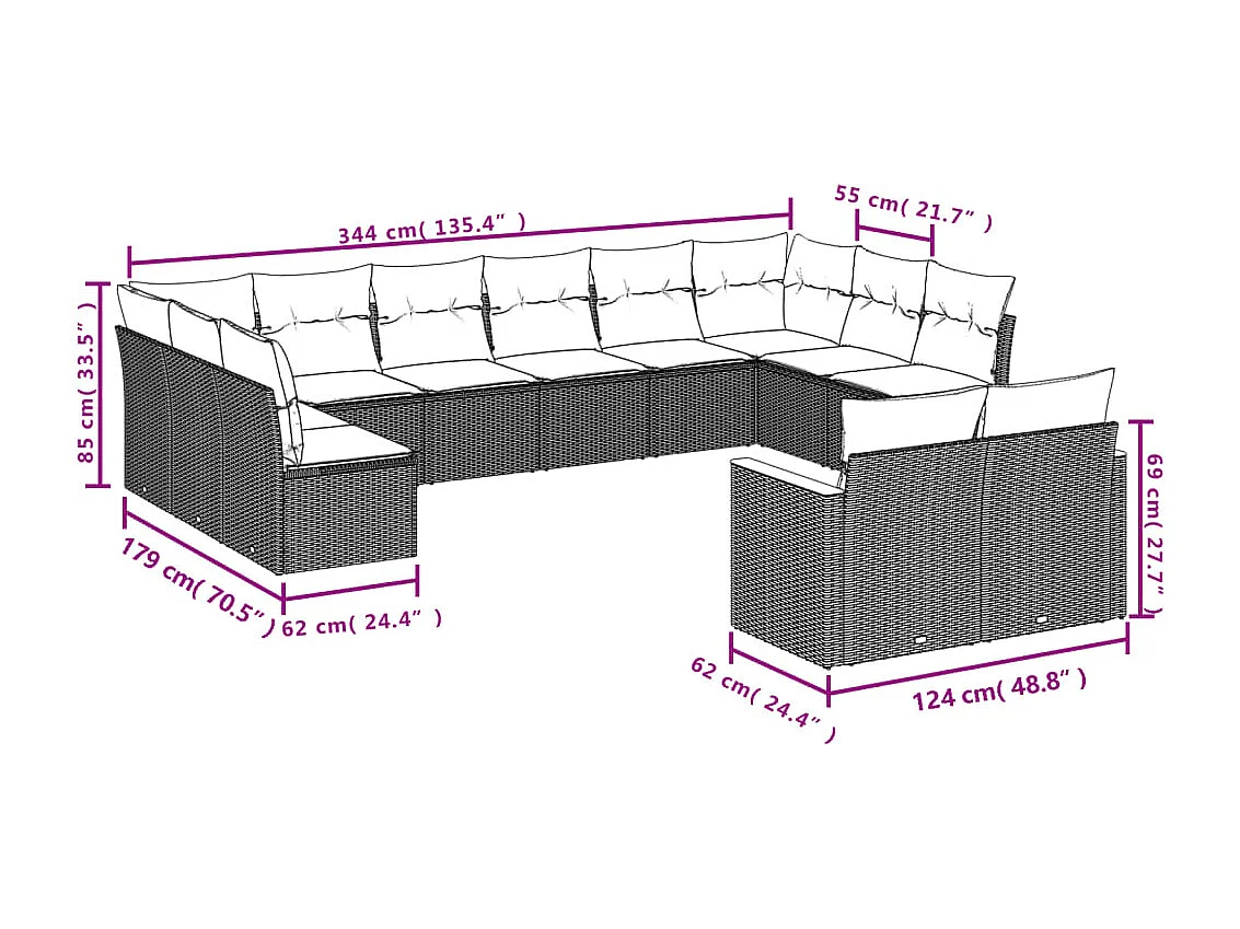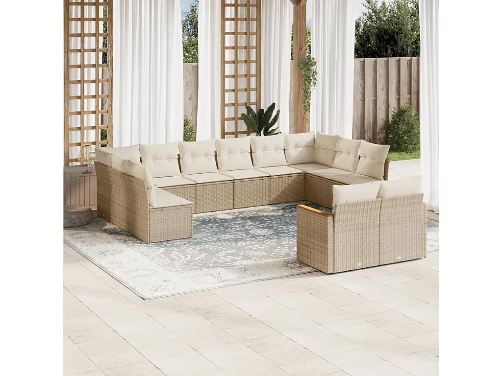 Salon de jardin avec coussins 12 pcs beige résine tressée