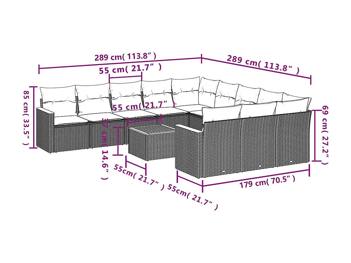 Salon de jardin avec coussins 12 pcs beige résine tressée