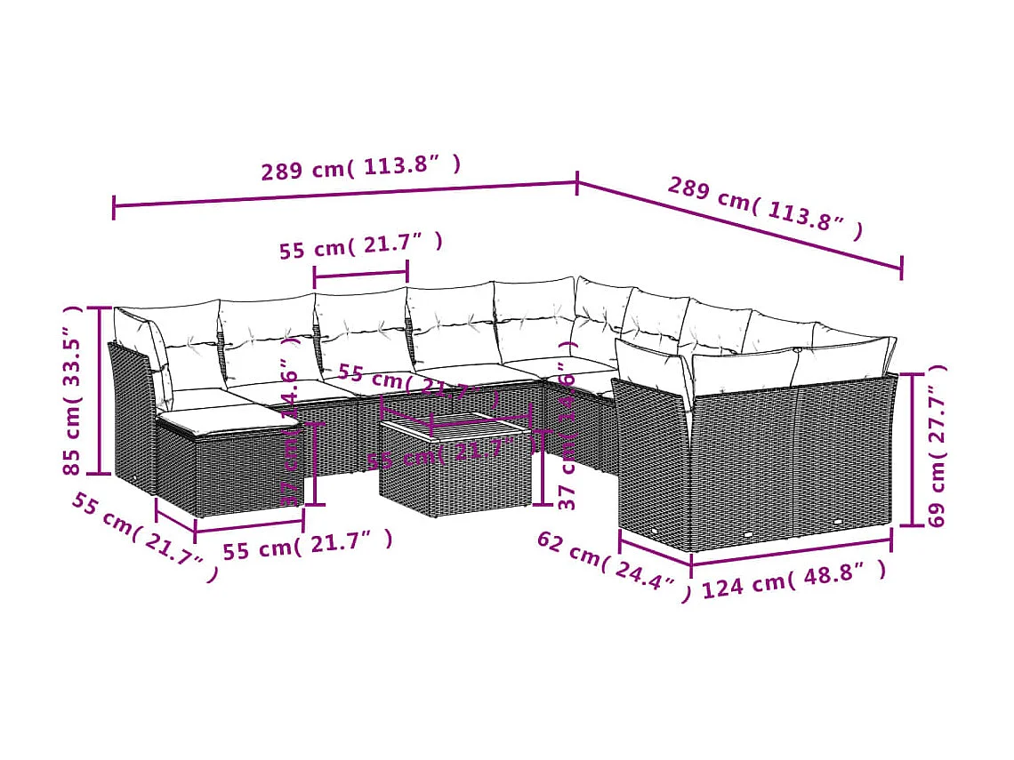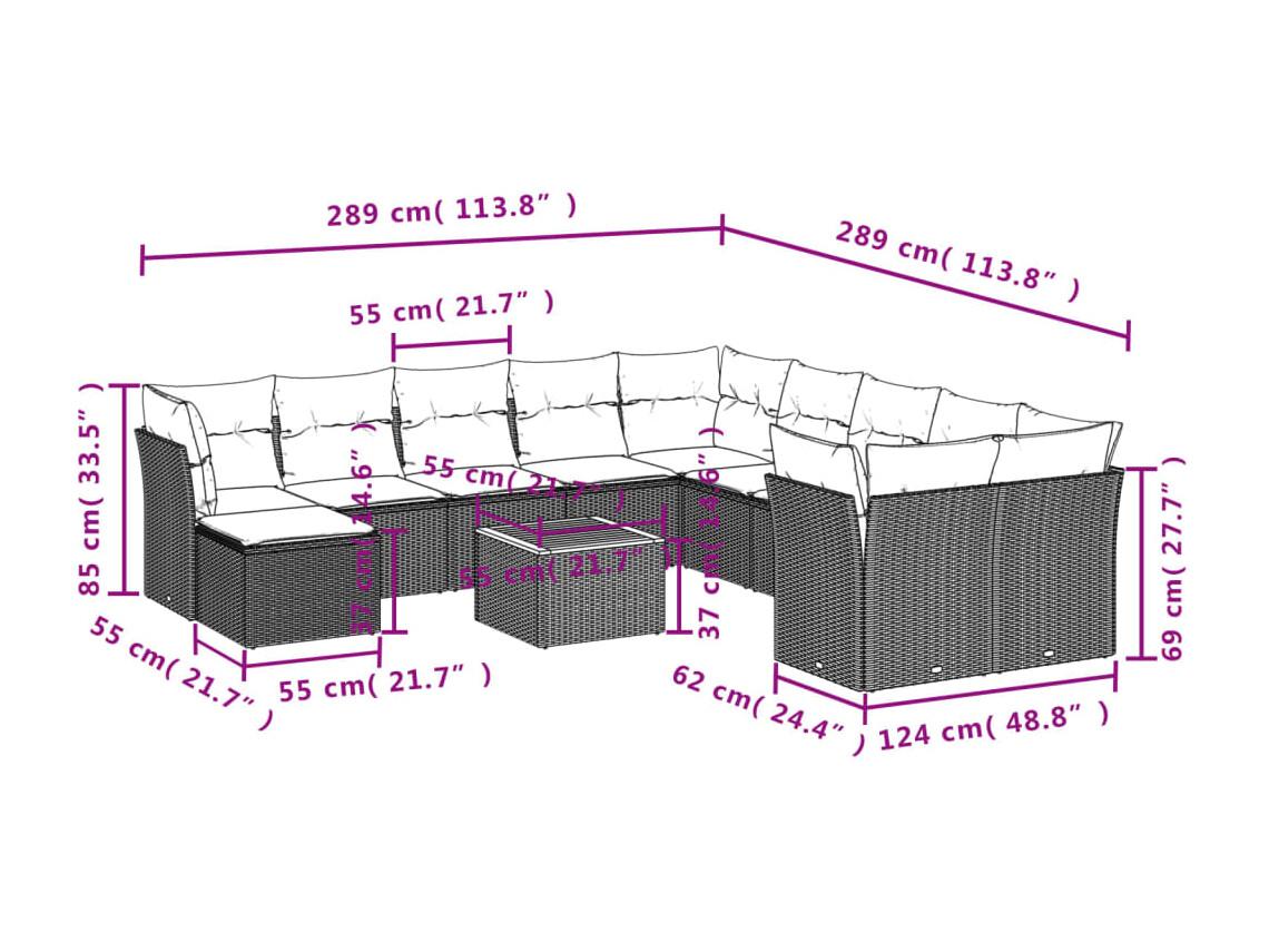 Salon de jardin avec coussins 12 pcs beige résine tressée