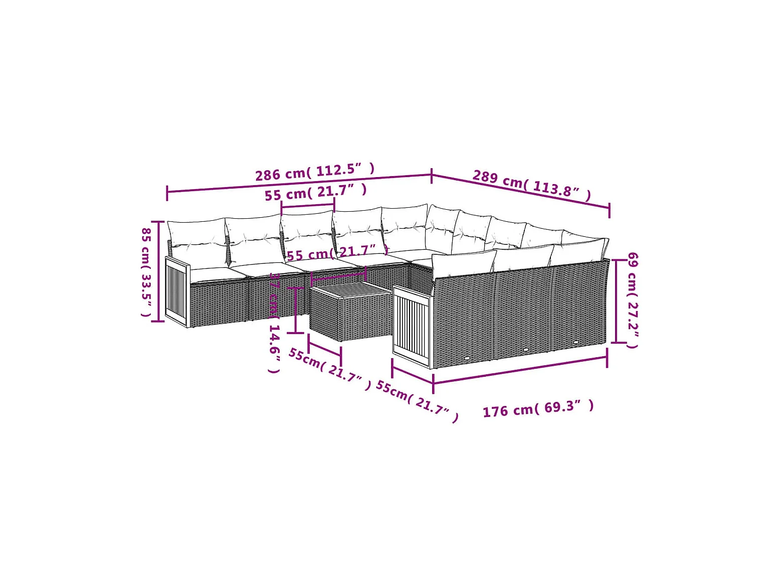 Salon de jardin avec coussins 12 pcs beige résine tressée