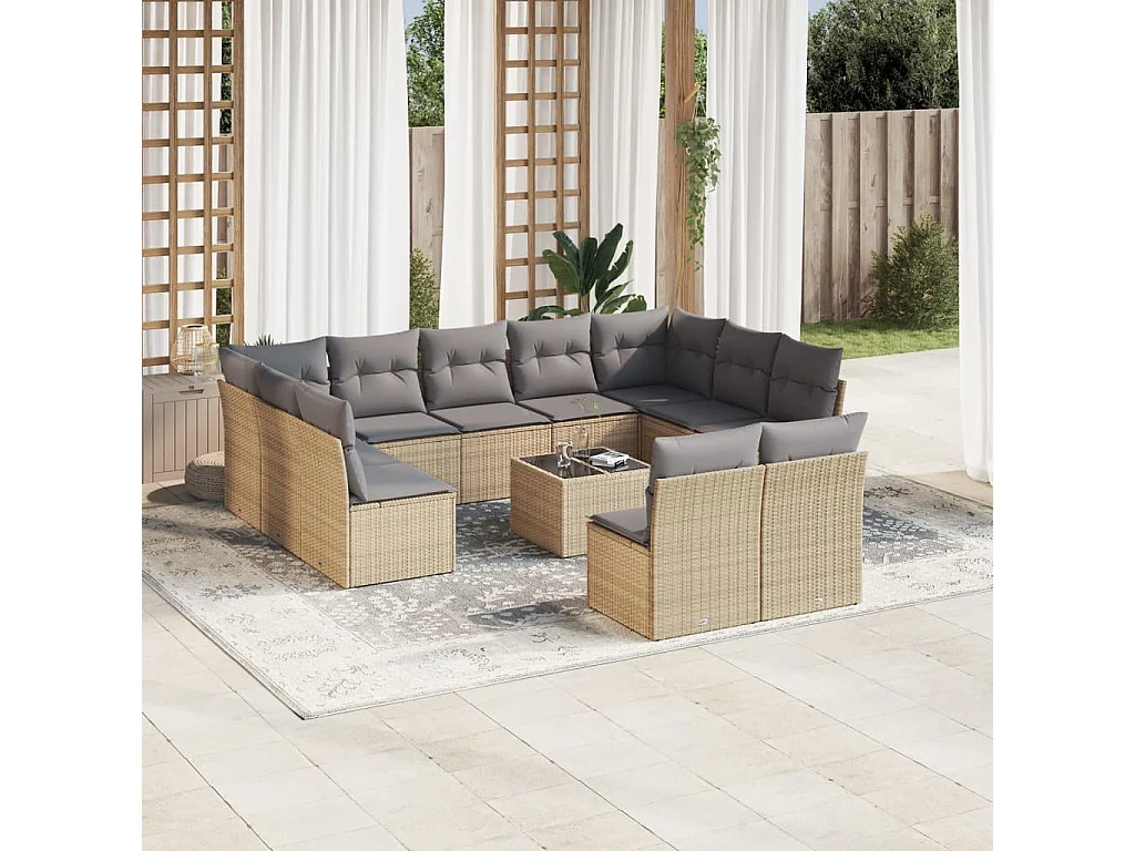Salon de jardin avec coussins 12 pcs beige résine tressée