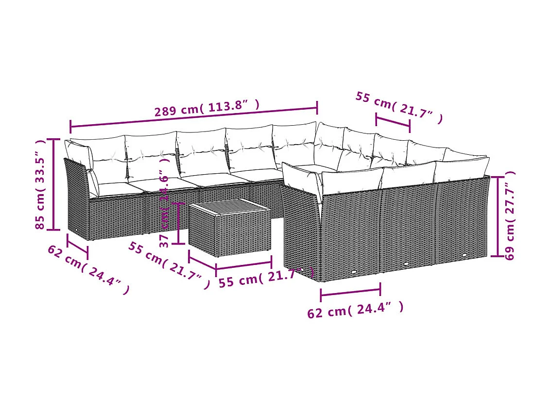 Salon de jardin avec coussins 12 pcs beige résine tressée