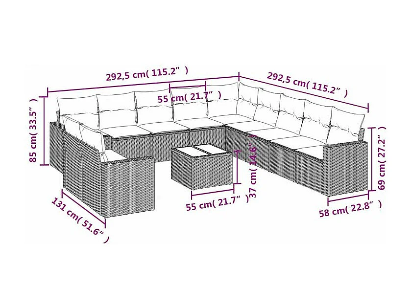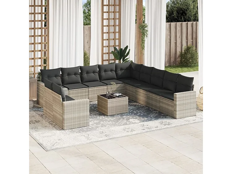 Salon de jardin avec coussins 12 pcs gris clair résine tressée