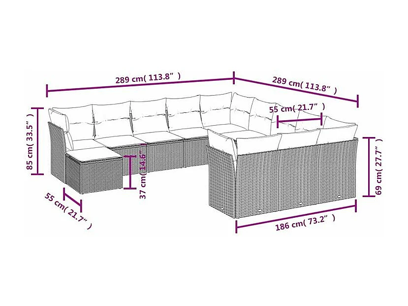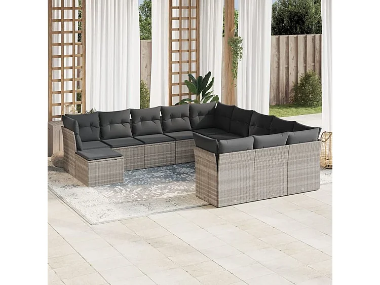 Salon de jardin avec coussins 12 pcs gris clair résine tressée