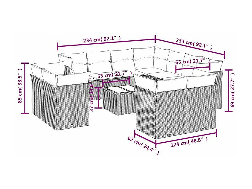 Salon de jardin avec coussins 12 pcs gris clair résine tressée