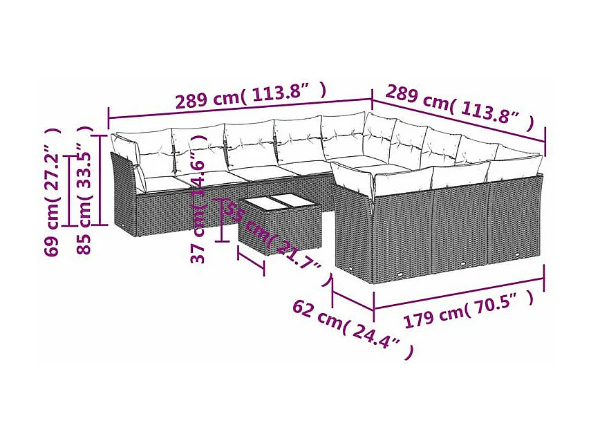 Salon de jardin avec coussins 12 pcs gris clair résine tressée