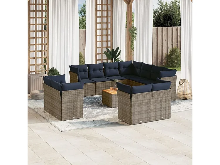 Salon de jardin avec coussins 12 pcs gris résine tressée