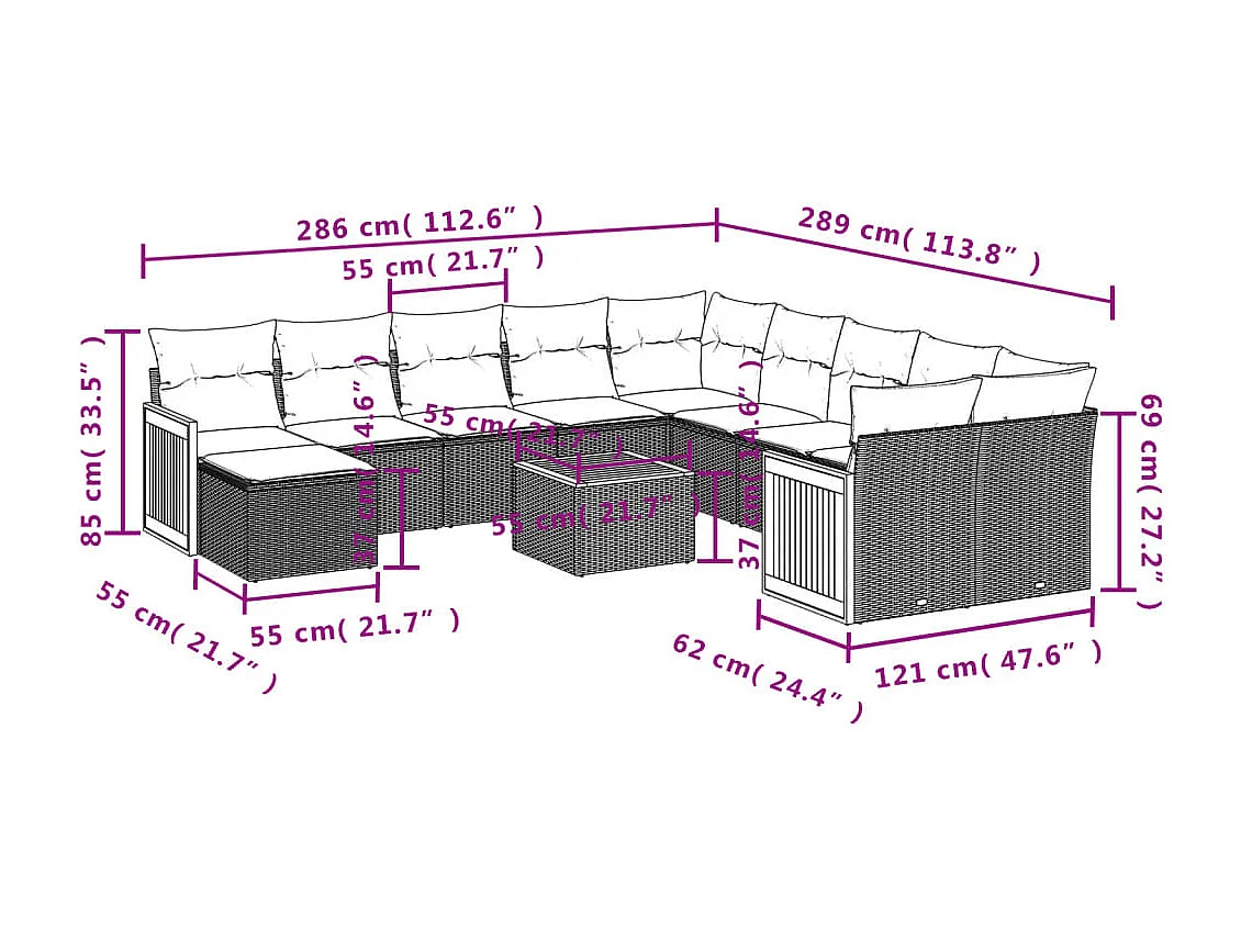 Salon de jardin avec coussins 12 pcs gris résine tressée
