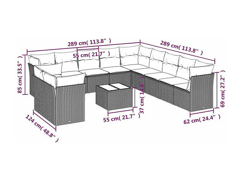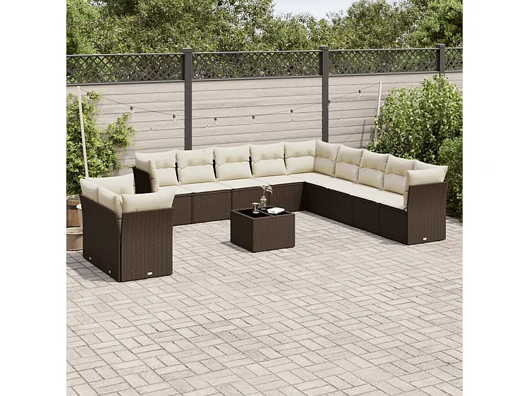 Salon de jardin avec coussins 12 pcs marron résine tressée