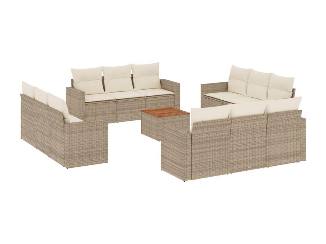 Salon de jardin avec coussins 13 pcs beige résine tressée