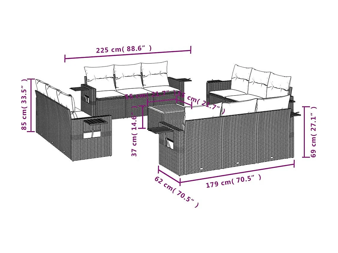 Salon de jardin avec coussins 13 pcs gris résine tressée
